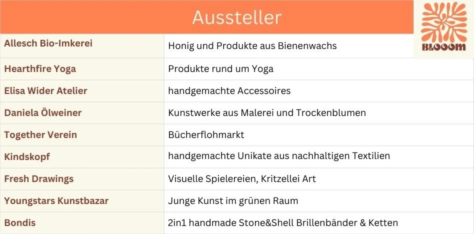 Um 14:00 wird das Festival eröffnet. Es wird über 15 kleine regionale Aussteller geben. Du kannst Dir dein eigenes Armband basteln mit Miwi Jewles einen Trockenblumenkranz für Dein zu Hause basteln mit dem Flowerstudio oder ein Bild mit Olana malen. Achtung: Bitte um Voranmeldung zu den Workshops via Instagram oder E-Mail. Außerdem gibt es einen tollen Bienenwachsworkshop mit Imker Michael Allesch und bewegtes Kindertheater mit Julia & Julia.
